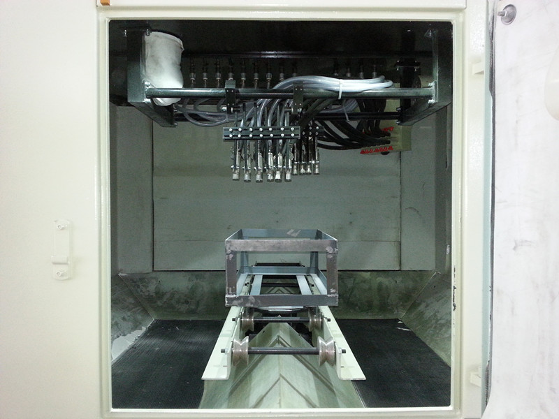 該設(shè)備是根據(jù)不銹鋼水槽產(chǎn)品特性而專門設(shè)計的(非標(biāo)準(zhǔn)型)轉(zhuǎn)動式自動噴砂機,完全適合購方所提供的產(chǎn)品。根據(jù)購方對產(chǎn)品效率的要求,設(shè)備采用轉(zhuǎn)動推車式噴砂機。